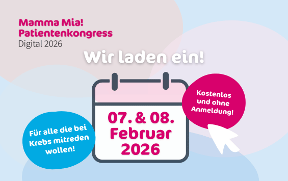 Haben Sie etwas vom Mamma Mia! Patientenkongress DIGITAL 2025 verpasst? Alle Gesprächsrunden und Seminare jetzt ansehen.