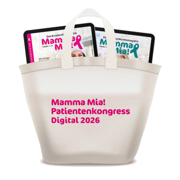 Mit dem Mamma Mia! – Patientenkongress Digital wollen wir Betroffenen und Angehörigen dabei helfen, einen Weg mit der Diagnose Krebs zu finden. Auf Sie warten Vorträge, Seminaren und Gesprächsrunden von und mit Expert:innen und Betroffenen. Die Themen reichen von den neuesten Forschungsergebnissen und Therapiemöglichkeiten über psychologische und rechtliche Fragen bis hin zu Tipps zu Ernährung und Bewegung. Über eine Chat-Funktion können Sie sich mit anderen Teilnehmenden anonym austauschen und Ihre Fragen direkt an die Expert:innen stellen.
